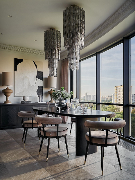 В результате перепланировки были снесены два портала между гостиной, столовой и кухней - получилось цельное пространство.