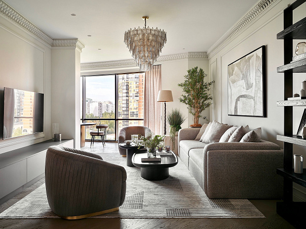 Квартира в современном стиле в светлых тонах для семьи с 3 детьми. Владельцы не первый раз доверяют нам создать дизайн своего дома. Последняя реновация сделана с учетом современных тенденций.