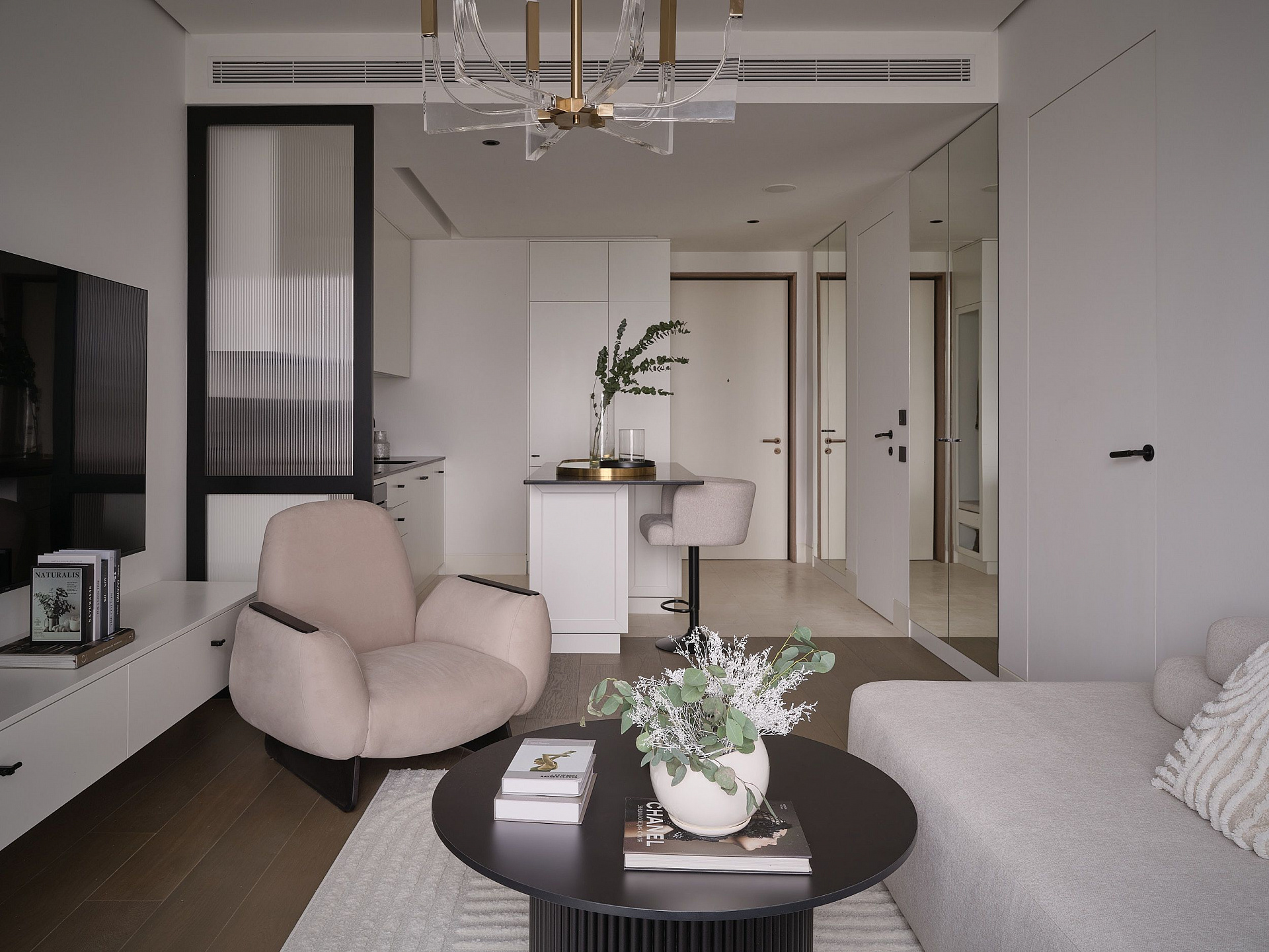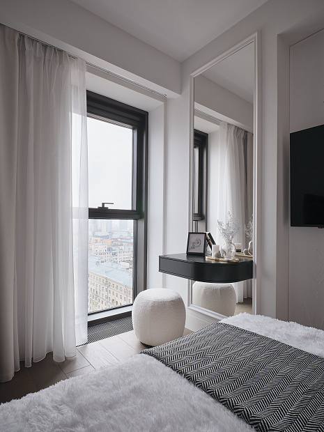 Квартира в светлых тонах с контрастными яркими акцентами. Владельцы купили ее под сдачу в аренду, поэтому задача была создать стильное уютное жилье отельного типа.