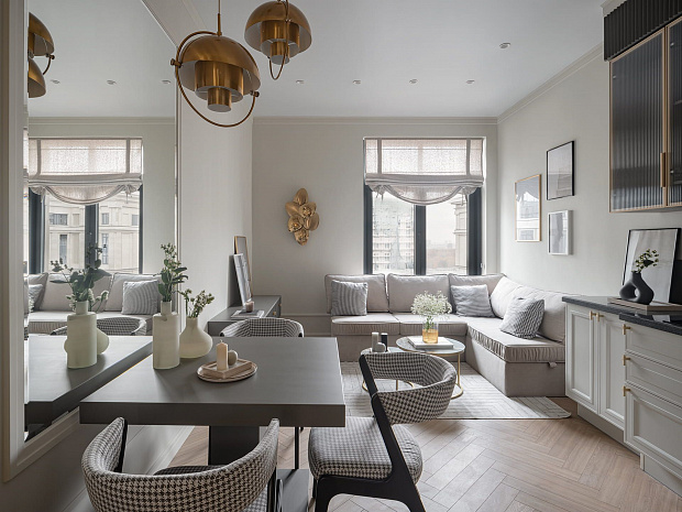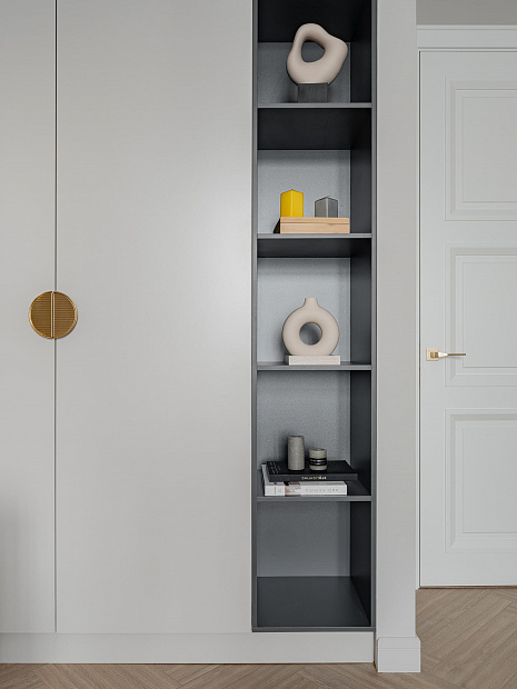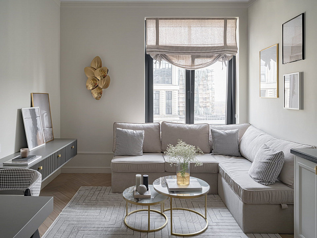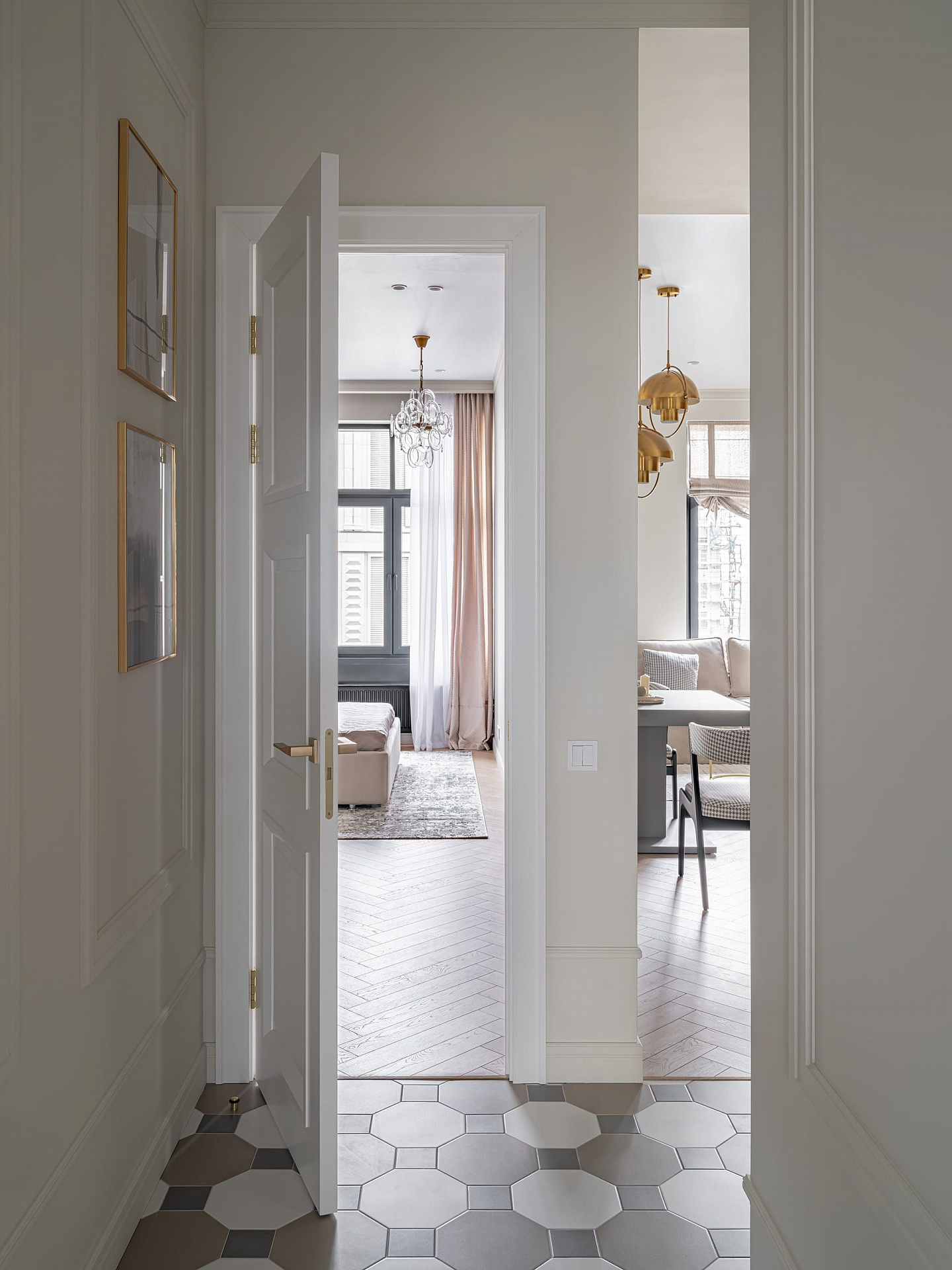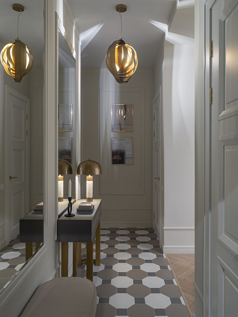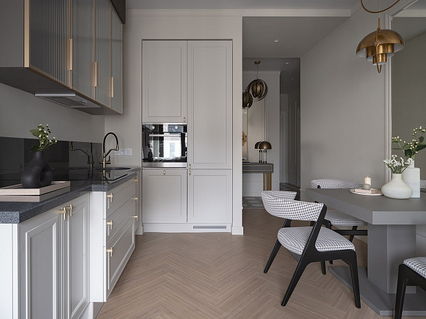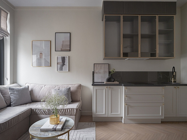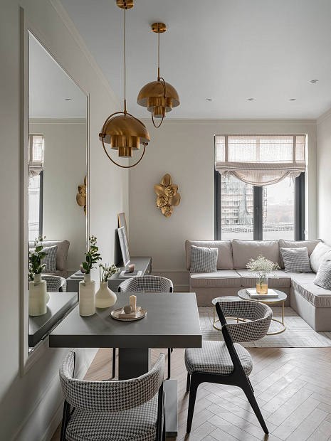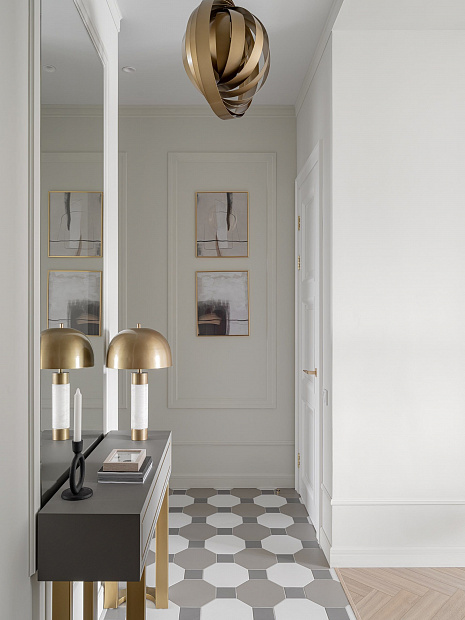 Квартира для мамы с дочкой в новом жилом комплексе на северо-востоке Москвы. Пространство выполнено в современном дизайне с элементами лаконичной неоклассики в светлых мягких оттенках.